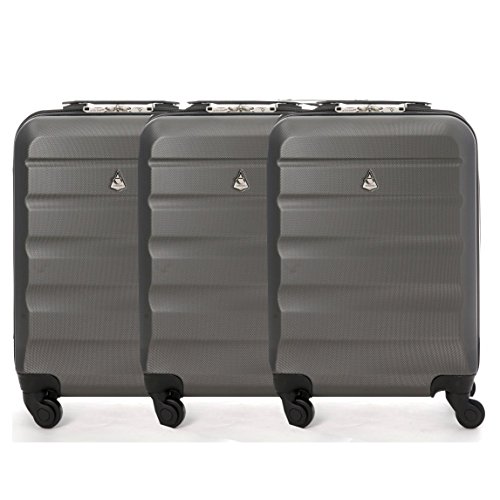 Die Aerolite Marke präsentiert Ihnen stolz eines der weltweit leichtesten Gepäcksets, welches Millionen von Reisenden eine rundum angenehmere Reiseerfahrung ermöglicht. Unter den drei erhältlichen Farben, finden Sie garantiert Ihren perfekten Reisebegleiter. Vier wendige Rollen garantieren eine einwandfreie 360 Grad Bewegung, während der versenkbare doppelrohrige Gepäckhandgriff (Druckknopfmechanismus) nicht nur unkomplizierten und einfachen Transport, sondern auch das kinderleichte Platzieren von Gegenständen auf der Obrseite des Koffers ermöglicht. Das Hartschalengehäuse besteht aus strapazierfähigem, kratzfestem ABS Material, um den Inhalt bestens auf Reisen zu schützen. Robuste, leichtgängige, breite Reißverschlüsse vereinfachen das Öffnen und Schließen des Gepäcks. Die Innenausstattung bietet Packgurte und interne Reißverschlussfächer, die sämtliches Gepäck während des Transports vor dem Verrutschen bewahren. Zusätzlich ist eine spezielle elastische Tasche integriert, die sich perfekt für Schuhe eignet. Jeder Koffer besitzt ein kostenlos mitgeliefertes Zylinderschloss mit 3-stelliger Zahlenkombination, um Reißverschlüsse zusammenzuhalten und Ihnen so zusätzliche Sicherheit zu bieten. Mit seiner hervorragenden 5 Jahre Garantie (für Herstellungsfehler) bietet Ihnen der Koffer absolute Sicherheit!