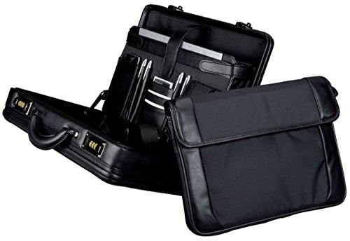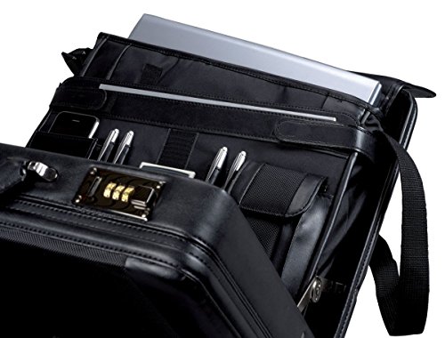 Laptop Attachékoffer MODICA Dehnfalte, zwei Zahlenkombinationsschlösser. Innen: Herausnehmbare Laptoptasche mit Schultertragegurt, vier Schreibgeräteschlaufen, zwei A4 Fächer, zwei Utensilienetuis, drei Visitenkartenfächer.