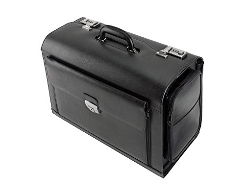 Alassio valise pour pilotes „VERONA“, cuir, noir, poche de