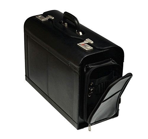 Alassio valise pour pilotes „VERONA“, cuir, noir, poche de