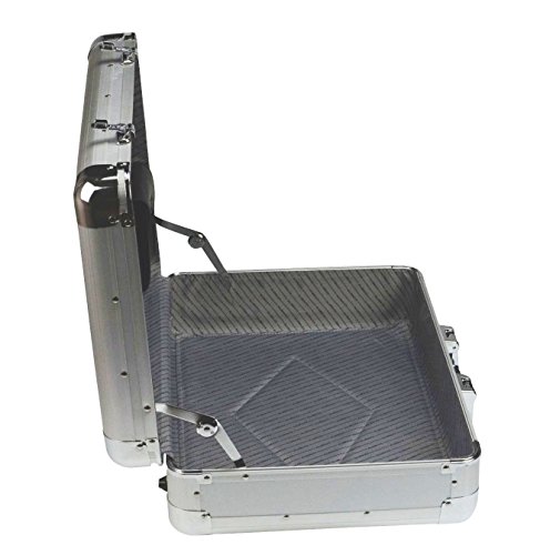 Attachékoffer TAURUS glattes Aluminium, verstärkte Kanten, zwei Zahlenkombinationsschlösser, Heavy-Duty-Griff. Innenaufteilung: Abnehmbare Tasche, zwei Visitenkartenfächer, drei Stifteschlaufen, Reißverschlussfach, zwei A4 Einsteckfächer.