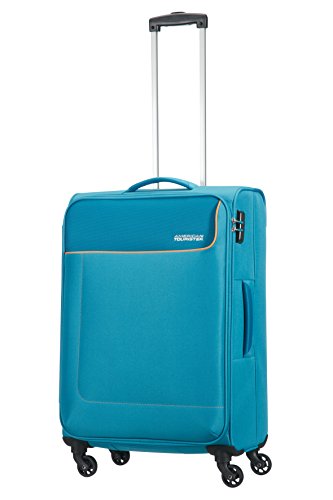 Ein Trolley von American Tourister mit gradliniger Front und schönen Akzenten. Ideal für alle, die einen schicken und geräumigen Koffer bevorzugen.Marke: American TouristerSerie: FunshineAußenmaße (LxBxH): 43cm x 27cm x 66cmGepäckart: WeichgepäckGewicht in kg: 3.30kgRichtgröße: L (65-70 cm)Material: PolyesterRollensystem: 4 RollenSchlossart: ZahlenschlossVerschlussart: ReißverschlussVolumen in L ca.: 61-70