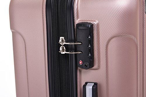 Gebrauchsanleitung für das TSA-Zahlenschloss 1. Das Schloss ist ab Werk mit 0-0-0 eingestellt 2. Zum Einstellen einer neuen Zahlenkombination müssen Sie die alte Kombination einstellen (ab Werk 0-0-0) 3. Am Schloss befindet sich auf der Reißverschlussseite der Resetknopf. Den drücken Sie mit einem spitzen Gegenstand (Kugelschreiber o.ä.) ein, bis er einrastet. 4. Jetzt können Sie mit den drei Einstellrädchen Ihre persönliche Zahlenkombination einstellen. Anschließend drücken Sie den Verriegelungsschieber nach innen, der Resetknopf springt in die Ausgangsposition zurück und Ihre Zahlenkombination ist gespeichert. 5. Der Koffer lässt sich jetzt nur mit Ihrer persönliche Zahlenkombination öffnen. LIEFERUMFANG Mass- und Gewichtsangaben ca.: (inkl. Rollen und Griffe) Grösse XL (76cm):(mit Dehnungsfuge Aussenmassen:76 x 52 x 32cm (H x B x T) Innemassen :68x 47x 30cm (H x B x T) Gewicht: 4,60 kg Volumen: min. 115 L Grösse L (65cm): (mit Dehnungsfuge Aussenmassen:65 x 46 x 29cm (H x B x T) Innemassen :59 x 43 x 24cm (H x B x T) Gewicht: 3,8 kg Volumen: min. 75 L Grösse M (55cm): Aussenmassen: 55 x 34 x 22cm (H x B x T) Innemassen : 48 x 32 x 20cm (H x B x T) Gewicht: 3,0 kg Volumen: min. 45 L (kein Dehnungsfuge und kein seitlicher Griff ) Die angegebenen Planenmaße sind immer in „Schnittgrößen“ mit einer üblichen Toleranz von ca. +/- 1-2% aber max.mit ca. 2cm Maßabweichungen angegeben. Das tatsächliche Nutzmaß kann hierbei also etwas vom angegebenen Nennmaß abweichen. Dies ist Industriestandard!
