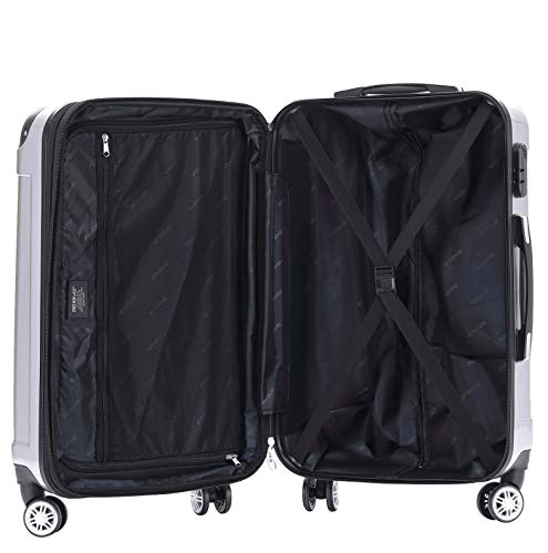 Produktbeschreibung: Mehr Volumen durch Dehnungsfuge: Dehnfalte sorgt für 25% mehr Volumen SicherheitEin integrierter Zahlenschloss öffnen Sie bequem mit einem drei- oder vierstelligen Code Komfortabler Transport4 gummierte Zwillingsrollen mit 360° drehbarer Funktion Hochwertige Höhenverstellbare Teleskopgriff Angenehmer TragekomfortTragegriffe an der Ober- und Längsseite 4 Kunststoff-Füße an der Längsseite Stoßfestes Material4 Stückige Kantenschutz an der vorderen Hart-schale Oberflächenglanz aus ABS + Polycarbonat Organisierter InnenraumReißverschlussfach im Packraum Trennwand mit Reißverschluss und zusätzlichem Netzfach Kreuzspanngurte in beiden Schalenhälften Maß- und GewichtsangabenGrösse XL (76cm): Aussenmassen: 76x48x30cmInnemassen : 68x45x26cmGewicht: 5,20 kg Max. Volumen: 120 Liter (mit Volumenerweiterung) Min. Volumen: 100 Liter Liter Grösse L (66cm): Aussenmassen: 66x46x24cmInnemassen : 55x39x23cmGewicht: 4,2 kg Max. Volumen: 75 Liter (mit Volumenerweiterung) Min. Volumen: 65 Liter Grösse M (55cm)-KEIN SEITLICHER GRIFF: Aussenmassen:55x39x23cm Innemassen : 48x35x20cm Gewicht: 3,3 kg Max. Volumen: 45 Liter (mit Volumenerweiterung) Min. Volumen: 35 Liter