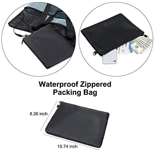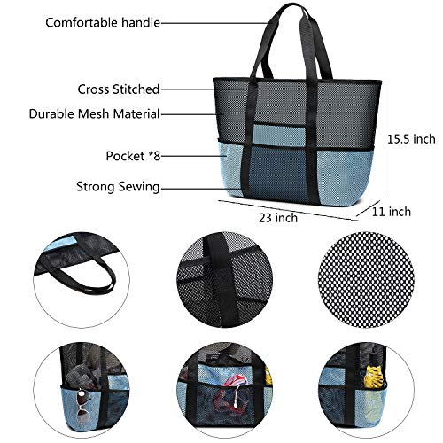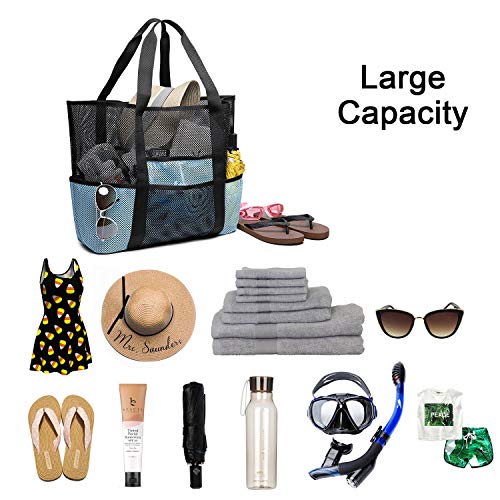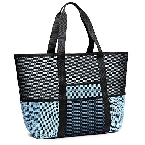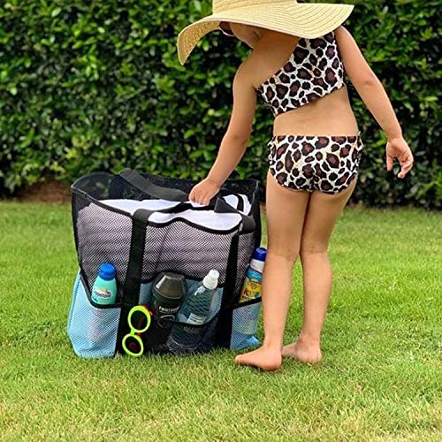 Bertasche Freizeittasche passt alles rein zum Strand, See, Pool, Sommerurlaub, Einkauf, Baden gehen, Ausflug, Sauna-Besuch, Weekendtrip, Sport, Geburtstagsgeschenk, Weihnachtsgeschenk, Handgepäck für den Flug usw.BesonderheitenGroße KapazitätDiese Schultertasche bietet acht Außenfächer und ein schön großes Hauptfach. Dadurch kann man Badesachen, Bademütze, Strandtücher, Bikini, Handtücher, Bademantel, Duschbad Schuhe, Föhn, Wasserflasche, Getränke, Brote, Sonnenmilch, Buch, Kosmetikkram, Wechselkleidung, Wischtücher, Schmutzwäsche usw. transportieren.Wasserfeste InnentascheEine kleine Tasche mit Reißverschluss ist speziell designed für Wertgegenstände, z.B. Handy, Geldbeutel, Schlüssel, Schmuckstück.MaterialAußentasche: Nylon Mesh-NetzwerkInnentasche: wasserfestes NylonAbmessungenAußentasche: 58 x 39 x 28 cmInnentasche: 27.3 x 21 cmGewicht: 360 GrammWie kann man diese Tasche waschen?Die Strand Tasche geeignet nur für Handwasche. Achtung: Die Tasche kann nicht in der Waschmaschine gewaschen werden.Lieferumfang1* große Außentasche in Schwarz und Blau1* kleine Innentasche in Schwarz