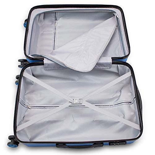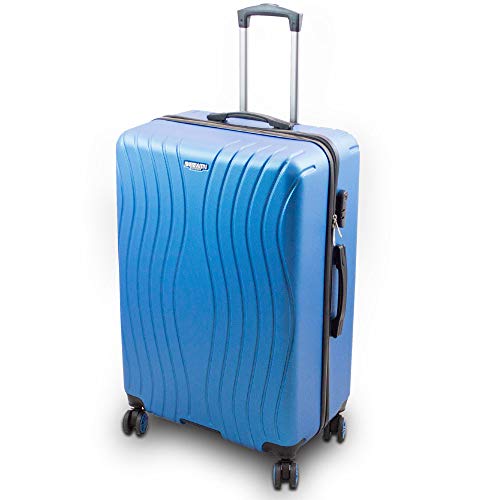 Merkmale: – Hardcase Reisekoffer aus ABS – 4 Rollen System – Extra weiche Softgriffe – Zusätzlicher Griff zum einfachen Heben – Teleskopgriff – Innenfutter aus Polyester – Zahlenschloss 3 Teiliges Hardcase Reisekoffer Set Durch das 360°-Rollen-System – sind sie laufruhig und komfortabel. Die Griffe sind besonders griffig und weich. Die Trolleys verfügen über Doppelgriffe, dadurch sind sie auch seitlich transportierbar. Ein zusätzlicher Griff sorgt für einfaches heben der Koffer. Das integrierte Sicherheits-Zahlenschloss bietet Ihnen Schutz vor unbefugtem Zugriff. ie haben einen höhenverstellbaren, ergonomisch geformten Teleskopgriff. LIEFERUMFANG 1x Koffer XL 1x Koffer L TECHNISCHE DATEN Koffer XL Aussenmass:(mit Rollen und Griff) ca. 76 x 52 x 30cm Innenmass: ca. 68 x 47 x 28cm Höhe inkl. Teleskopgriff: ca. 103cm Gewicht: ca. 3,8kg Volumen: bis zu 90L Koffer L Aussenmass: (mit Rollen und Griff) ca. 67 x 45 x 27cm Innenmass: ca. 57 x 40 x 24cm Höhe inkl. Teleskopgriff: ca. 102cm Gewicht: ca. 3,2kg Volumen: bis zu 55L