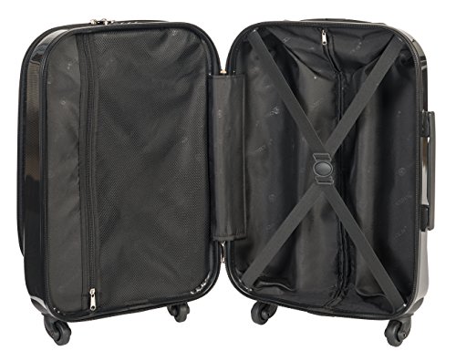 Business Trolley M – Aussenmasse ca. 55 x 39 x 22 cm – Gewicht ca. 2,6 kg – ca. 36 Liter – Bordgepäck Handgepäck Kabinen Trolley. Material: Polypropylen Hartschale Koffer mit 4 Leichtlaufräder (Rotation 360°). Fächer und Taschen – Anzahl von Abteilen 2 – Fach für Computer ca. 44 x 30 x 3,5 cm – Doppelsimples TSA-Schloss – Innen ein Netzfach und elastische Spanngurte. Weitere Größen – Farben und Attraktive Designs in unserem Shop. Ohne abgebildeten Inhalt.