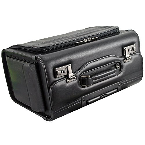 D & N Pilotentrolley Aktenkoffer Pilotenkoffer Laptop-Fach Business VOLLRIND-LEDER Akten Trolley Koffer 46x35x23 cm Schwarz 2865 Bowatex