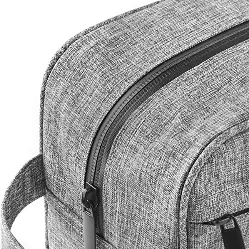 Ordnung auch unterwegs Mit unserem Kulturbeutel mit den Maßen 25 x 16 x 11 cm haben Sie auch unterwegs alle Hygiene- und Kosmetikprodukte perfekt geordnet. Ein geräumiges Hauptfach bietet Stauraum für Cremes, Duschgel, Shampoo, Kosmetik und alles, was Sie auf Ihrer nächsten Geschäftsreise oder im anstehenden Urlaub benötigen. Die zusätzliche Aussentasche mit Reissverschluss bietet Platz für flache Gegenstände. Das Hauptfach wird mit Hilfe eines wasserdichten Reißverschlusses geöffnet und sicher verschlossen. Das große Hauptfach verfügt zusätzlich über weitere Netztaschen, die sich ideal für kleine Utensilien eignen und diese zuverlässig aufbewahren. Der praktische Begleiter Die Kulturtasche besteht aus 100% hochwertig verarbeitetem Polyester (300D Polyester, 210D Polyesterfutter). Polyester ist nicht nur äußerst reißfest und langlebig, sondern auch leicht zu reinigen. Das zeitlose Design in schlichtem Grau mit Leinenoptik verleiht dem Reise Kulturbeutel ein elegantes Aussehen, das Frauen und Männer gleichermaßen begeistert. Dank des Henkels lässt sich die leichte Waschtasche problemlos transportieren. Mit unserem BRANDSON Kulturbeutel sind Sie bestens für Ihre nächste Reise ausgestattet! Alles auf einen Blick ✔ 25 x 16 x 11 cm ✔ Reißfest ✔ Wasserabweisend ✔ Frauen & Männer ✔ Leichte Reinigung ✔ Leinenoptik in Grau ✔ 100% Polyester, versteift ✔ Hauptfach mit wasserdichtem Reißverschluss
