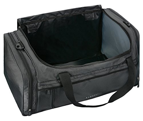 Die praktische Bugatti Lima Reisetasche mit festem Boden eignet sich für verschiedene Verwendungszwecke. Man kann sie als kleine Reisetasche, Weekender, Sporttasche uvm. verwenden. Sie verfügt über einen abnehmbaren Umhängeriehmen und ein gepolstertes Griffband. Das Design besticht durch einen schicken, sportlichen Look. Die zusätzlichen Seitentaschen ermöglichen das Verstauen verschiedenster Accessoires. Zusätzlich verfügt die Tasche über ein Reißverschluss-Frontfach. Der Clou: Die Materialeigenschaften erlauben es, die Reisetasche in leerem Zustand extrem flach zu komprimieren. Somit benötigt die Reisetasche wenig Stauplatz in Schränken, Koffern, etc..Marke: bugattiSerie: LimaAußenmaße (LxBxH): 65cm x 27cm x 35cmGepäckart: WeichgepäckGewicht in kg: 0.97kgRichtgröße: L (65-70 cm)Material: PolyesterExtras: Tragegriff, BodennägelAusstattung: Tasche(n) außen, ReißverschlussfachVerschlussart: ReißverschlussVolumen in L ca.: 61-70
