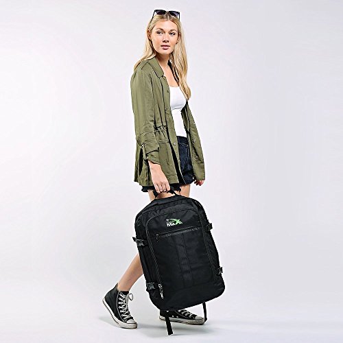 Handgepäck für Flugreisen, das die maximal erlaubte Handgepäckgröße voll ausnutzt. Widerstandsfähiger Nylonrucksack mit gepolstertem Rücken, 3 Hauptfächern mit Reißverschluss, 2 internen Fächern mit Reißverschluss, verstellbaren Trageriehmen, Tragegriffen und Seitengurten. Dieser leichte Rucksack ist ideal, wenn Sie die erlaubte Handgepäcksgröße bei Billigfluglinien voll ausnutzen möchten (denken Sie daran, dass Fluglinien wie Ryanair für jedes Stück Handgepäck über 10 kg und für das Einchecken von Gepäck zusätzliche Gebühren verlangen). Sehr leicht und mit einem maximalen Fassungsvermögen von 44 Litern. So entworfen, um der maximal auf Flügen zugelassenen Handgepäcksgröße von 55x40x20cm zu entsprechen. Wiegt nur 680g.