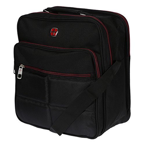 Material: Nylon (stark wasserabweisend) Maße: Höhe ca. 34 cm, Breite ca .30 cm, Tiefe ca. 16 cm Aufgeteilt in zwei große Hauptfächer mit extra verstärktem Boden passend selbst für DIN-A4 zwei zusätzliche Frontfächer Auf der Rückseite befindet sich eine Schlaufe um den Flugbegleiter an einem Reisetrolley zu befestigen