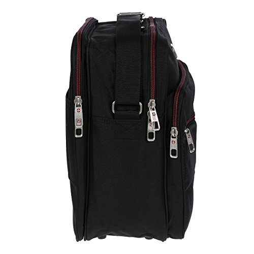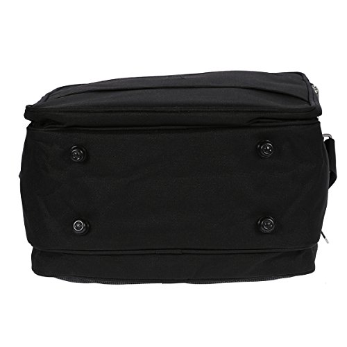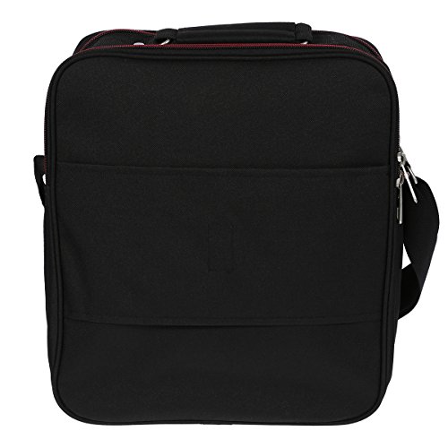 Material: Nylon (stark wasserabweisend) Maße: Höhe ca. 34 cm, Breite ca .30 cm, Tiefe ca. 16 cm Aufgeteilt in zwei große Hauptfächer mit extra verstärktem Boden passend selbst für DIN-A4 zwei zusätzliche Frontfächer Auf der Rückseite befindet sich eine Schlaufe um den Flugbegleiter an einem Reisetrolley zu befestigen
