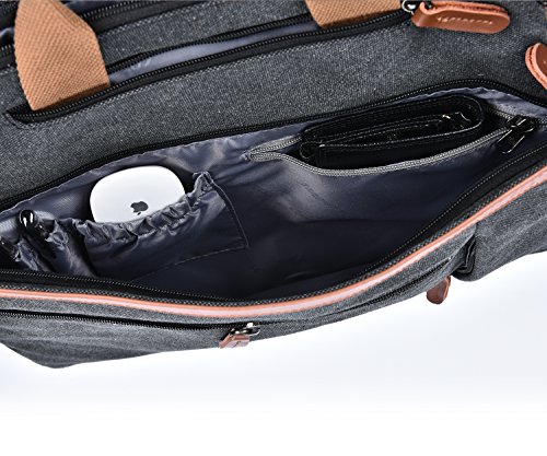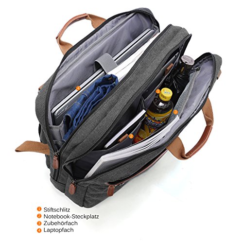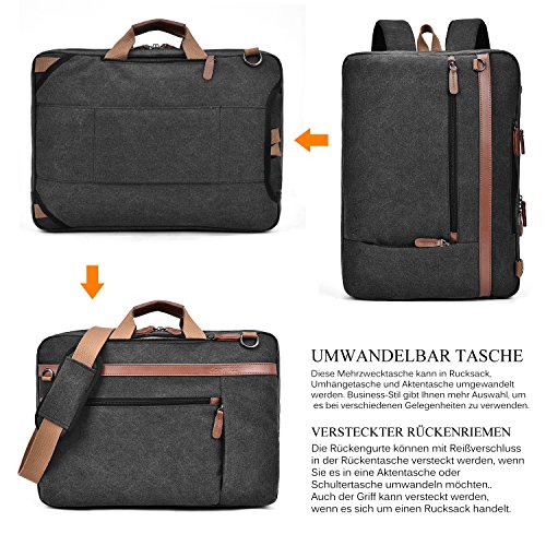Verfolgung der besten Qualität der Laptop Tasche Kategorie und widmet sich die Bereitstellung der besten Produkt und Service für Kunden, CoolBELL basiert auf der Schneide der Mode trends. Wir bemühen uns, das Beste in jedem Detail von Design, Farbe, Material, Nähen, Verkauf und Service zu erreichen. Passend für Laptop Marke wie Dell / HP / Toshiba / Lenovo / Acer / MacBook Air / Macbook Pro die bis zu 15,6 Zoll. Geeignet für Uni Studenten, Geschäftsmann, Büroangestellte, Jugendliche, Studenten, Outdoor Gens usw. Größe:ca.44 x 32 x 7,5 CM; Passend bis zu 15,6 Zoll Laptop Gewicht:ca. 1,25 Kg Material: Leinwand Gewebe; 210D wasserdichtes Polyesterfutter Drei Tragen Stile: Rucksack Stil: Bequemes Rückengurt System, einfach und bequem auf den Rücken zu laden. Umhängetasche Stil: Eine rückseitige Tasche, zum der Schultergurte zu verstecken, ein entfernbarer Schultergurt eingeschlossen, wenn Sie ihn als Umhängetasche benutzen. Handtasche Stil: Der Hnadgriff kann versteckt oder herausgenommen werden, verwenden Sie als Handtasche nach Ihren Bedürfnissen. Feature:Diese Tasche kann in Rucksack umgewandelt werden, Umhängetasche und Handtasche, nur du willst es sein. Konstruktion: Zwei Hauptfächer sind für Laptop oder Tablette usw entworfen. Zubehörfach mit Taschen innen für Artikel wie Netzkabel, Maus, Schlüssel, Reisepass, Handy usw. Drei Fronttaschen mit Reißverschluss Design. Es ist bequem und sicher für Ihre Artikel die Aufbewahrung von Stiften, Power Bank, Smartphone usw. Zwei Schichten von stärkeren stoßfesten Polsterung halten Ihren Laptop von Stößen. Ein langlebiger Gepäck Gürtel ist einfach, die Tasche auf dem Trolley eines Gepäcks zu fixieren. Warme Tipps:Bitte mach dir keine Sorgen um die Tasche mit dem materiellen Geruch, wenn du es bekommst, der Geruch wird an einem luftigen Ort für eine Weile verschwinden. Glücklicher Einkauf !!