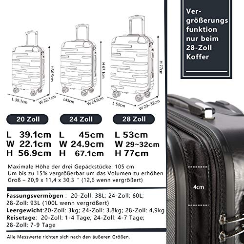 ABS-Hartschale mit Oberflächenstruktur garantiert Robustheit und zusätzliche KratzfestigkeitABS-Hartschale mit Oberflächenstruktur garantiert Robustheit und zusätzliche KratzfestigkeitOber- und Seitentragegriffe mit TPE-Polsterunterlage bieten zusätzlichen Komfort und ein sicheres Gefühl beim Anheben schwerer Lasten.Vier 360 ° -Drehräder sind aus verschleißfestem Nylonmaterial und einer Eisenachse gefertigt, die für holprige Oberflächen und lange Strecken entscheidend ist.Eingebautes Zahlenschloss für sicheres Reisen.Qualität two way Reißverschluss.Wir haben sorgfältig alle Aspekte der Herstellung eines klassischen Koffers betrachtet, der eine großartige Funktionalität, hervorragende Qualität und einen stilvollen Look hat. Wir achten auf Details, sammeln jedes Detail und streben nach hoher Qualität, ein Ausgangspunkt, um von unseren lieben Kunden auf der ganzen Welt Vertrauen zu gewinnen.
