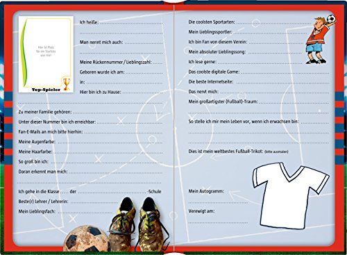 Das Freundebuch für alle Fußballfans! Auf den 96 fröhlichen und farbenfrohen Seiten dieses Albums ist viel Platz zum Eintragen, Malen und Einkleben rund um den schönsten Ballsport der Welt!Grösse (BxHxL) in cm: 15,3 x 21,7 x 1,5Gewicht in gr: 324Farbabweichungen und Änderung der Designs vorbehalten. Preis pro Stück.Neuheit: 2016Achtung! Verpackung ist kein Spielzeug. Verpackung vor dem Spielen entfernen. Anschrift des Herstellers aufbewahren.