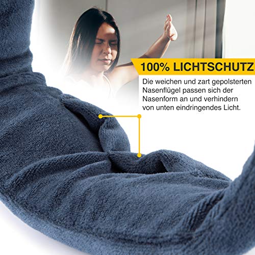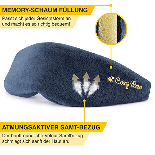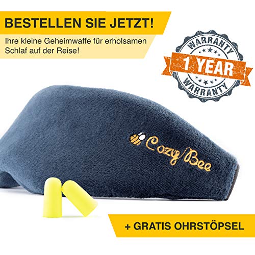 Gemütlicher geht's nicht!Diese Schlafbrille wurde speziell für die Reise für Männer und Frauen konzipiert.Kaum aufgesetzt, verspüren Sie extreme Gemütlichkeit und Müdigkeit sodass einerholsames Schläfchen unverzichtbar ist. Ob die Sonnenstrahlen am Tag oder das Leselicht des Sitznachbarn bei Nacht, ab sofort sind Sie ungestört von jedem Licht und können einfach und bequem durchschlafen.Das sind Ihre Vorteile:- 100% Lichtschutz dank blickdichten Materialien und Nasenflügel / Nasenpolster- Kuschelig warmhaltende Memory-Schaum Füllung- Hautfreundlicher und atmungsaktiver Velboa Samt-Bezug- Individuelle Größenanpassung dank Klettverschluss und elastischem Band- Komplett waschbar!- Inkl. GRATIS Ohrstöpsel / OhropaxACHTUNG!Diese Schlafmaske wurde speziell für Erwachsene für das Reisen entwickelt.Doch um einen optimalen Schlaf zu gewährleisten, empfehlen wir Ihnen dazu dringend das Cozy Bee Nackenkissen!Zusammen mit dem Cozy Bee Nackenkissen und der Cozy Bee Reise Schlafmaske haben sie DAS unschlagbare Reise Schlafset!Worauf warten Sie noch?Bestellen Sie JETZT die Cozy Bee Reise-Schlafmaske und erhalten Sie GRATIS Ohrstöpsel dazu!