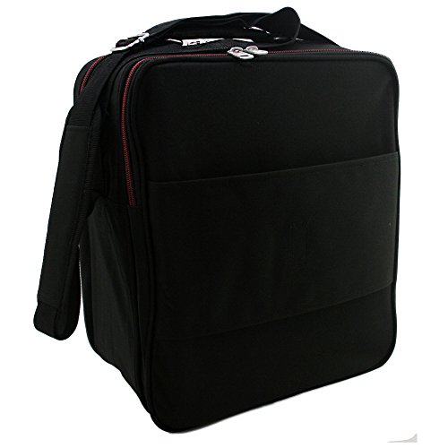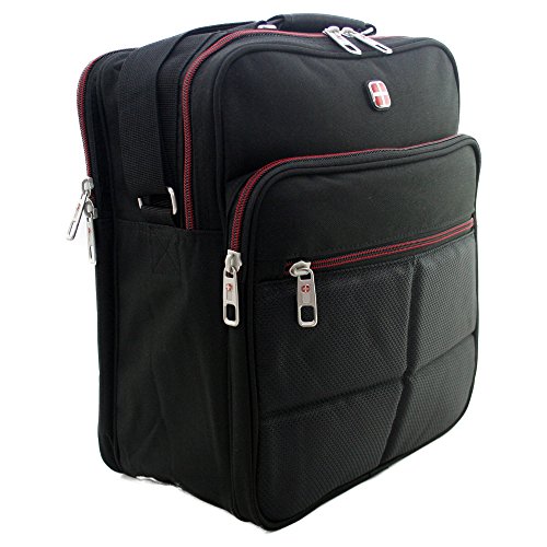 Die bewährte Allzwecktasche im vorzeigbaren Design Das hochwertige Polyestergewebe sieht mit den roten Reißverschlüssen richtig gut aus Viel Stauraum bietet diese Tasche in Hochformat Sie ist wasserabweisend und pflegeleicht Querformat für DIN A 4 Ordner geeignet Beliebt für Freizeit- / Arbeitstasche oder Flugbegleiter Die Tasche hat zwei Hauptfächer, ein breites und ein schmales Hauptfach und 2 Vortaschen mit Reißverschluss Alle Fächer der Tasche werden mit Reißverschluss gesichert Das hintere schmale Fach hat eine Größe von ca. Breite 28 x Höhe 31,50 cm und eine Tiefe von ca. 3 cm Das große Hauptfach hat eine Größe von ca. Breite 28 x Höhe 31,50 cm und eine Tiefe von ca. 12 cm Die mittlere Vortasche hat eine Größe von ca. Breite 27 x Höhe 25 cm, Die untere Vortasche hat eine Größe von ca. Breite 27 x Höhe 15 cm Die Tasche hat sowohl einen verstärkten Tragegriff als auch einen verstellbaren Schulterriemen, die Gesamtlänge beträgt ca. 125 cm, der Gurt wird durch eine 5 cm breite Verstärkung geführt Das große Hauptfach hat einen kleinen, umklappbaren Boden Auf der Rückseite befindet sich ein Aufsteckgurt – Material: 600D Polyester, Futter 200 D Nylon – Farbe: schwarz mit roten Reißverschlüssen – Gesamtbreite ca. 27 cm – Höhe ca. 31,50 cm – Gesamttiefe ca. 17,50 cm (incl. Vorfächer) – Am Boden 4 kleine Standfüße