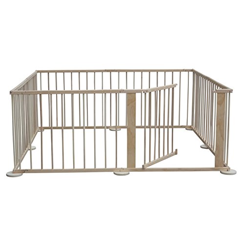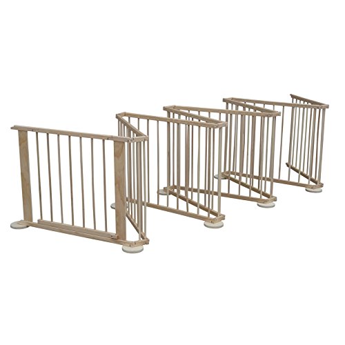 Riesiger Laufstall für Kleinkinder mit 8 Elementen Flexibel aufstellbar (8-eckig, Rechteckig oder als Abtrennung) sehr vielseitig als Kinderschutz einsetzbar, Wandhalterungen ermöglichen es Ihnen spezielle Flächen abzugrenzen (Raumteilung, Kaminschutz) Das Laufgitter kann problemlos auch mit weniger Elementen aufgestellt werden. Erstklassige Verarbeitung und alle Elemente sind abgerundet (keine scharfen Kanten) schneller und einfacher Abbau durch innovatives Klappsystem weitere Details: Farbe: naturfarben Gewicht: 9,5 kg 7 Zaunelemente (ca. L 90cm H 70cm) 1 Türelement (ca. L 90cm H 70cm) Solide Holzausführung Durchmesser ca. 250 cm (bei 8-eckig) Gesamtlänge ca. 7,20 m Massive Ausführung aus Kiefernholz Lieferumfang: 7 Zaunelemente 1 Türelement 8 Standfüsse Verbindungsschrauben Aufbauanleitung Dieses Produkt lässt sich vielseitig in verschiedenen Varianten als Laufgitter, Absperrgitter oder Raumtrenner einsetzten und aufstellen. Durch die Gummibeschichtung unter den Standfüssen und der Dreipunktverbindung zwischen den Standfüssen und den Elementen, kann das Gitter vom Kind nicht verschoben werden.