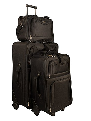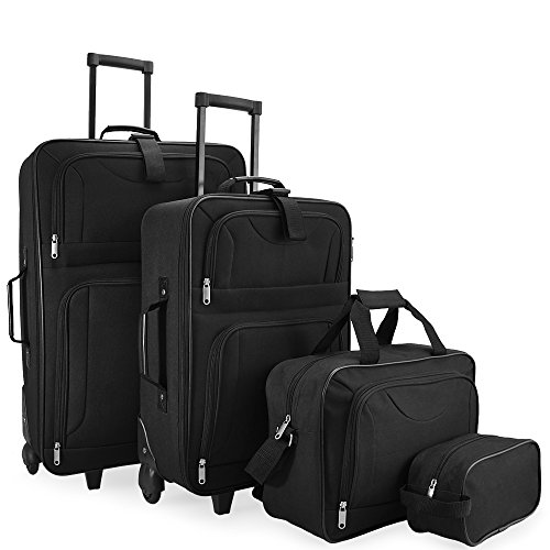 Dieses rundum gelungene Reisekoffer-Set besteht aus zwei großen Reisekoffern mit praktischer Trolleyfunktion, einer Handgepäck Tasche mit Tragegriffen und verstellbarem Schultergurt sowie einer praktischen Kosmetiktasche. Die Trolley Koffer und Reisetaschen lassen sich platzsparend ineinander stapeln. Durch das weiche Innenfutter, Packgurte und Rundum-Reißverschlüsse wird Ihr Gepäck gut und sicher verstaut. KLICKGURT-SYSTEM! Alle Teile können miteinander verbunden werden. Egal ob Business Reise oder Urlaub, so halten sie alle Koffer zusammen Trolley 60 Liter: – 64 x 44 x 21 cm – Formstabil – Rundum Reißverschluss – Räder – zusätzliche Gummistandfüsse – Tragegriffe oben und seitlich – Ausziehbarer Griff oben (Aluminium Teleskopgriff) – Klickgurt-System zum Verbinden mit den anderen Koffern – aufgesetzte Aussentaschen – Kreuzpackgurt zum knitterfreien Transport Ihrer Kleidung – Netztasche mit Reißverschluss Trolley 34 Liter: – 52 x 37 x 18 cm – Formstabil – Rundum Reißverschluss – Räder – zusätzliche Gummistandfüsse – Tragegriffe oben und seitlich – Ausziehbarer Griff oben (Aluminium Teleskopgriff) – Klickgurt-System zum Verbinden mit den anderen Koffern – aufgesetzte Aussentaschen – Kreuzpackgurt zum knitterfreien Transport Ihrer Kleidung – Netztasche mit Reißverschluss Businesstasche 16 Liter: – 38 x 28 x 15 cm – Reißverschluss – Tragegriffe oben – Schultergurt – aufgesetzte Aussentasche – Kreuzpackgurt zum knitterfreien Transport Ihrer Kleidung – Netztasche mit Reißverschluss Kosmetiktasche 3 Liter: – 24 x 10 x 13 cm – Formstabil – Reißverschluss Technische Daten: – Material: 100% Polyester – Farbe: Schwarz Lieferumfang: – 1x 4tlg. Kofferset
