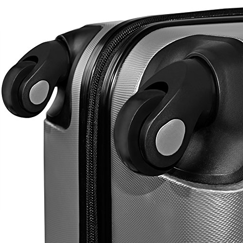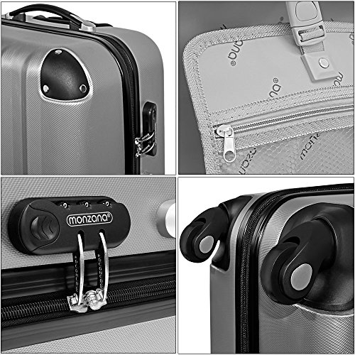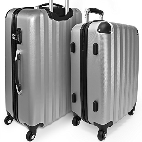 Mit unserem Kofferset kann die Reise beginnen – Gönnen sie sich 2019 einen besonderen Urlaub! Dieses schöne 3-teilige Hartschalen Kofferset ist der perfekte Reisebegleiter für Flug-, Zug- oder Schiffsreisen. Die hochwertige Verarbeitung unserer Reisekoffer und die flexiblen Packmöglichkeiten bieten tollen Reisekomfort welcher auch Sie überzeugen wird. Der ausgekleidete Innenraum lässt sich abteilen und besitzt zusätzlich Spanngurte sowie ein praktisches Netzfach. Hohe Strapazierfähigkeit bei niedrigem Gewicht zeichnet diese Hartschalenkoffer im vorteilhaften M-L-XL 3er Set aus. Durch gummierte Rollen (360° drehbar), den praktischen Teleskop- und 2 Tragegriffe lassen sich die Koffer in jeder Situation komfortabel und kraftsparend bewegen. Unsere Koffer Trolley besitzen ein Schloss, damit Ihr Eigentum sicher verwahrt wird. Anleitung: Einfach Hebel zurückziehen, die gewünschte Zahlen-Kombination eingeben und Hebel loslassen, schon ist Ihr Code eingestellt. Produktvorteile: – strapazierfähigkeit und niedriges Gewicht – hochflexible ABS Hartschale – abteilbarer Innenraum – Netzfach und Spanngurte – Zahlenschloss – 360° Drehbar für leichtes Handling – 4 gummierte Rollen – ausziehbarer Griff – Tragegriffe (oben und seitlich) – Koffer sind ineinander stapelbar – Kantenschutz Technische Daten: – Material: ABS Kunststoff / Polyester – Material (Fütterung): 210D Polyester – Maße (M): 36 Ltr: 35 x 22 x 50 cm; Gewicht: 2,5kg – Maße (L): 68 Ltr: 42 x 25 x 60cm; Gewicht: 3,3kg – Maße (XL): 89 Ltr: 48 x 28 x 69cm; Gewicht: 4,2kg – Farbe: schwarz – Griffe ausgezogen – Boden bis oberes Ende Griff: 95cm (bei allen Koffergrößen) ACHTUNG: Plastiktüte vor Kindern fernhalten Lieferung: – 1x Trolley Set (M,L,XL) nach Wahl