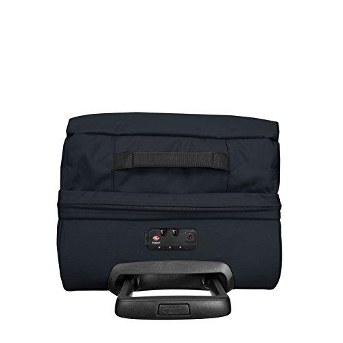 EASTPAK Reisetasche für den nächsten Urlaub Daten Reisetasche: o Maße: Breite ca. 33 cm, Höhe ca. 50 cm, Tiefe ca. 25 cm o Teleskop Trolleysystem verstellbar: ca. 0 cm – ca. 52 cm o Gewicht: ca. 2500 g o Farbe: Cloud Navy (Blau) o 1 Tragegriff gepolstert: ca. 16 cm o Auf der linken Seite 1 Tragegriff gepolstert: ca. 16 cm o Material: 100% Polyester o Lieferumfang: EASTPAK Reisetasche mit Etikett Ausstattung Reisetasche: o Reisetasche wird mit abschließbarem Two Way Zipper geschlossen o Das Hauptfach ist durch 2 Trennwände in 2 Fächer unterteilt o Im Hauptfach 1 Einschubfach o Auf der Vorderseite 1 Zipperfach o Auf der rechten und linken Seite 2 Kompressionsriemen mit verstellbarem Clipverschluss o Mit fester Bodenplatte und weiter Öffnung ausgestattet o Mit TSA-Zahlenschloss ausgestattet o Ist als Handgepäck geeignet o Besitzt geräumiges Hauptfach o Besitzt 2 Rollen o Das EASTPAK Logo ist gut sichtbar eingearbeitet EASTPAK Tranverz S – Die Reisetasche mit Rollen Reisen ist mit dieser EASTPAK Tranverz S Reisetasche einfach gemacht. In dem Gepäckstück können Sie Ihre wichtigsten Habseligkeiten aufbewahren und bequem hinter sich herziehen. Durch die Kompressionsriemen an den Seiten lässt sich der Inhalt der Tasche komprimiert aufbewahren. Sie können die EASTPAK Reisetasche auch als Handgepäck mit in den Flieger nehmen. Die Reisetasche ist in einem sportlichen Design.