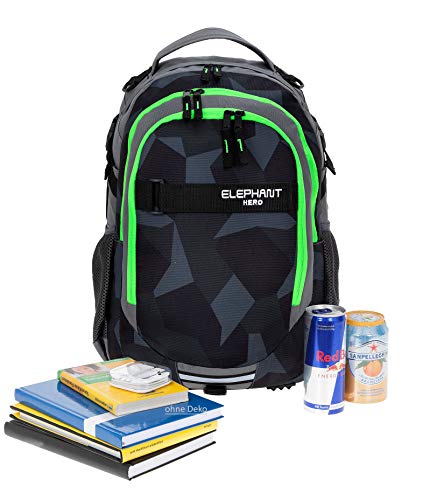 ELEPHANT HERO Signature Rucksack mit viel Stauraum (30 L) und Super Soft AIR 3D Rücken 2 Hauptfächer mit Reißverschluß, Vorfach, innen: Organizer Fächer und Taschen, 2 Außentaschen (Flaschen etc.) Polstertasche innen, auch für Laptop bis 39 x 27 cm, Kompressionsgurte seitlich breite Polstergurte, Polsterrücken, Brustgurt (abnehmbar), Bodennoppen, Einlegeboden im Hauptfach (Front gefüttert)Maß: 46 x 32 x 21 cm, Gewicht: 800 Gramm, Volumen: 30 Liter, Material: 100% Polyester, Lieferung ohne DekoEine mögliche Preisersparnis -sogg. Streichpreis- (in EUR oder %) bezieht sich auf den UVP des Herstellers (Unverbindliche Preisempfehlung des Herstellers). Der durchgestrichene Preis ist der UVP.