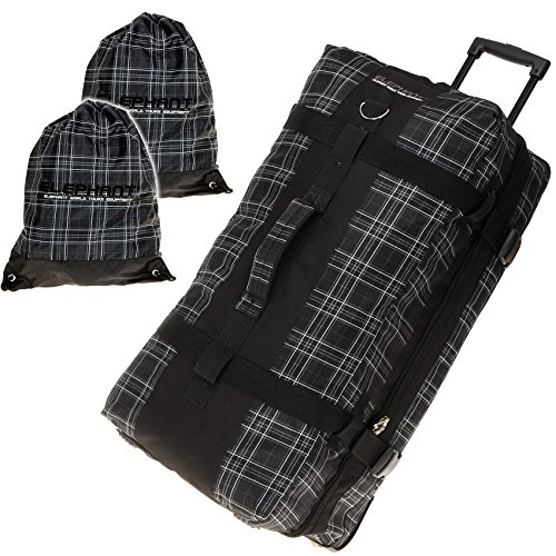 Reise Trolley ELEPHANT ® 82 cm XXL Lieferumfang: Trolley 82 cm + 2 Stk. Wäschebeutel ( 48 cm x 38 cm) Der moderne Reisetrolley – praktisch: inkl. 2 Wäschebeutel / Schuhbeutel 2 grosse Hauptfächer, Sandwicheinteilung (öffnet wie ein normaler Koffer) 2 Wäschebeutel / Schuhbeutel inklusive, entnehmbar, einzeln verwendbar Innenfach mit Abtrennung und Einzelfach (Unterwäsche / Socken seitlich) Technische Daten: Außenmaße ca: Länge: 82 cm x Breite: 39 cm x Höhe: 36 cm Volumen brutto: + 120 Liter Gewicht: ca. 3.300 Gramm Trolley Stangen Länge: ca. 22 cm Trolley Höhe mit ausgefahrener Stange stehend: ca. 106 cm Wäschebeutel: ( 48 cm x 38 cm)< Material: 100% Nylon (sehr feste & stabile Qualität) Inline-Skater Räder, kugelgelagert, Alustange, ausziehbar / voll versenkbar geschützte Radhäuser, leichtgang Rollen Koffergurte, 2fach, mit festem Klick-Verschluß, dicke Zipper Hauptfach mit Schloßöffnungen, abschließbar (optional) Tragegriff oben und am Deckel Bodennoppen unten, 2 Rückenschienen, Namensschild Lieferung ohne Deko & Inhalt