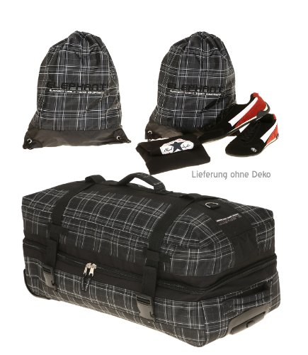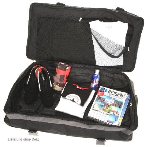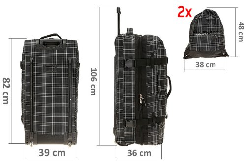Reise Trolley ELEPHANT ® 82 cm XXL Lieferumfang: Trolley 82 cm + 2 Stk. Wäschebeutel ( 48 cm x 38 cm) Der moderne Reisetrolley – praktisch: inkl. 2 Wäschebeutel / Schuhbeutel 2 grosse Hauptfächer, Sandwicheinteilung (öffnet wie ein normaler Koffer) 2 Wäschebeutel / Schuhbeutel inklusive, entnehmbar, einzeln verwendbar Innenfach mit Abtrennung und Einzelfach (Unterwäsche / Socken seitlich) Technische Daten: Außenmaße ca: Länge: 82 cm x Breite: 39 cm x Höhe: 36 cm Volumen brutto: + 120 Liter Gewicht: ca. 3.300 Gramm Trolley Stangen Länge: ca. 22 cm Trolley Höhe mit ausgefahrener Stange stehend: ca. 106 cm Wäschebeutel: ( 48 cm x 38 cm)< Material: 100% Nylon (sehr feste & stabile Qualität) Inline-Skater Räder, kugelgelagert, Alustange, ausziehbar / voll versenkbar geschützte Radhäuser, leichtgang Rollen Koffergurte, 2fach, mit festem Klick-Verschluß, dicke Zipper Hauptfach mit Schloßöffnungen, abschließbar (optional) Tragegriff oben und am Deckel Bodennoppen unten, 2 Rückenschienen, Namensschild Lieferung ohne Deko & Inhalt