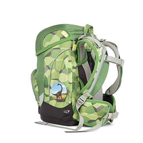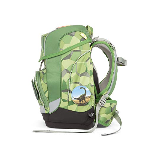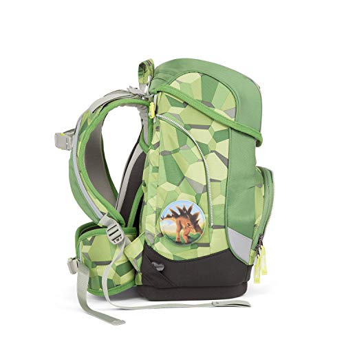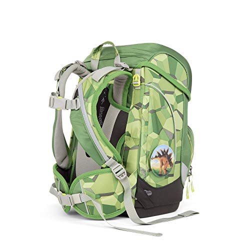 Ergobag Cubo Schulranzen-Set 5-tlg Set bestehend aus: – Ergobag Cubo Schulranzen – Sportbeutel – 5-tlg. Klettiesset – Schlamperrolle – Federmäppchen, gefüllt Bücher, Hefte, Mäppchen … In der Summe wird ein Kinderrücken auf dem Schulweg durch ein stattliches Gewicht belastet. Eine wichtige Ursache für spätere Rückenprobleme liegt in unvorteilhafter Belastung im Kindesalter. Die neue Produktlinie cubo von ergobag kombiniert die klassische Form traditioneller Schulranzen mit dem innovativen Tragesystem des beliebten ergobag-schulrucksacks. Anspruchvolles Design, Qualität, Funktionalität und Liebe zum Detail zeichnen auch diese Neuheit von ergobag aus. Besonderheiten auf einen Blick -Der hochformatige Ranzen bietet viel Armbewegungsfreiheit für kleine cubo-Träger -stabile Beckenflossen sichern die Gewichtsverlagerung auf den Beckenbereich -Der cubo lässt sich genau auf die Körpergröße des Kindes einstellen und wächst mit: 1,10 m bis 1,50 m. -Leichte Handhabung des Deckels durch selbstschließenden Magnetverschluss -Standfester und Wasserdichter Boden. -Fronttasche mit Trinkflaschenhalter und Platz für eine Brotdose. -Zwei Innenfächer mit Reißverschluss: eines für das separat erhältliche Regencape und das andere für Kleinigkeiten. Außenausstattung Schulrucksack: – 2 ergonomische und gepolsterte Schultergurte, in der Länge variabel verstellbar – gepolsterter Beckengurt, abnehmbar – 1 Tragegriff – fixierender Brustgurt, abnehmbar – Trägeraufhengung kann jedem Wachstumsschub mit angepasst werden – 1 Reißverschluss-Vortasche mit Flaschenhalterung und Platz für eine Brotdose – Schloss lässt sich mit einer Hand öffnen und zu schließen – aufgenähte Reißverschlüsse nur passend für