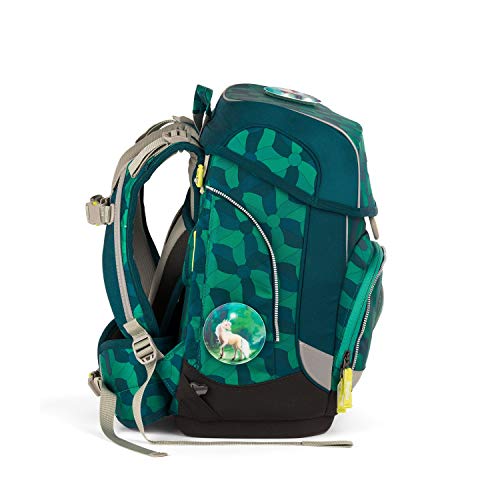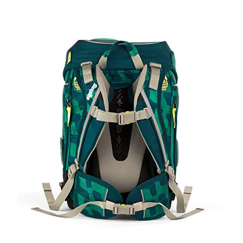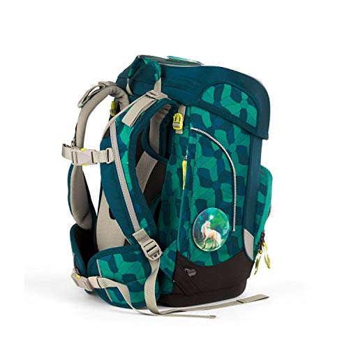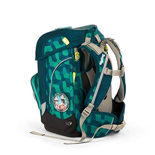 Ergobag Cubo Schulranzen-Set 5-tlg Set bestehend aus: – Ergobag Cubo Schulranzen – Sportbeutel – 5-tlg. Klettiesset – Schlamperrolle – Federmäppchen, gefüllt Bücher, Hefte, Mäppchen … In der Summe wird ein Kinderrücken auf dem Schulweg durch ein stattliches Gewicht belastet. Eine wichtige Ursache für spätere Rückenprobleme liegt in unvorteilhafter Belastung im Kindesalter. Die neue Produktlinie cubo von ergobag kombiniert die klassische Form traditioneller Schulranzen mit dem innovativen Tragesystem des beliebten ergobag-schulrucksacks. Anspruchvolles Design, Qualität, Funktionalität und Liebe zum Detail zeichnen auch diese Neuheit von ergobag aus. Besonderheiten auf einen Blick -Der hochformatige Ranzen bietet viel Armbewegungsfreiheit für kleine cubo-Träger -stabile Beckenflossen sichern die Gewichtsverlagerung auf den Beckenbereich -Der cubo lässt sich genau auf die Körpergröße des Kindes einstellen und wächst mit: 1,10 m bis 1,50 m. -Leichte Handhabung des Deckels durch selbstschließenden Magnetverschluss -Standfester und Wasserdichter Boden. -Fronttasche mit Trinkflaschenhalter und Platz für eine Brotdose. -Zwei Innenfächer mit Reißverschluss: eines für das separat erhältliche Regencape und das andere für Kleinigkeiten. Außenausstattung Schulrucksack: – 2 ergonomische und gepolsterte Schultergurte, in der Länge variabel verstellbar – gepolsterter Beckengurt, abnehmbar – 1 Tragegriff – fixierender Brustgurt, abnehmbar – Trägeraufhengung kann jedem Wachstumsschub mit angepasst werden – 1 Reißverschluss-Vortasche mit Flaschenhalterung und Platz für eine Brotdose – Schloss lässt sich mit einer Hand öffnen und zu schließen – aufgenähte Reißverschlüsse nur passend für