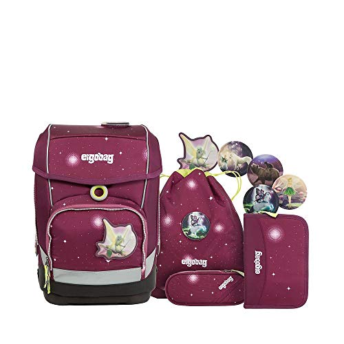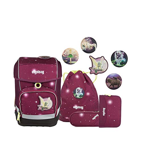 Ergobag Cubo Schulranzen-Set 5-tlg Set bestehend aus: -Ergobag Cubo Schulranzen -Sportbeutel -5-tlg. Klettiesset -eine Schlamperrolle -ein Federmäppchen (befüllt 22tlg.) Bücher, Hefte, Mäppchen … „In der Summe wird ein Kinderrücken auf dem Schulweg durch ein stattliches Gewicht belastet. Eine wichtige Ursache für spätere Rückenprobleme liegt in unvorteilhafter Belastung im Kindesalter Die neue Produktlinie cubo von ergobag kombiniert die klassische Form traditioneller Schulranzen mit dem innovativen Tragesystem des beliebten ergobag-schulrucksacks. Anspruchvolles Design, Qualität, Funktionalität und Liebe zum Detail zeichnen auch diese Neuheit von ergobag aus. Besonderheiten auf einen Blick -Der hochformatige Ranzen bietet viel Armbewegungsfreiheit für kleine cubo-Träger -stabile Beckenflossen sichern die Gewichtsverlagerung auf den Beckenbereich -Der cubo lässt sich genau auf die Körpergröße des Kindes einstellen und wächst mit: 1,10 m bis 1,50 m. -Leichte Handhabung des Deckels durch selbstschließenden Magnetverschluss -Standfester und Wasserdichter Boden. -Fronttasche mit Trinkflaschenhalter und Platz für eine Brotdose. -Zwei Innenfächer mit Reißverschluss: eines für das separat erhältliche Regencape und das andere für Kleinigkeiten. Außenausstattung Schulrucksack: – Intergalaktisch schnell sind alle kleinen Weltraumfans mit diesen ergobag cubo-Modellen unterwegs ? und erobern mit ihrem ergobag neben fremden Galaxien auch noch die 1.-4. Klasse. Mit Feenzauber und Sternenstaub in ein märchenhaftes Schulleben starten. Die FeenzauBär ergobag cubo-Modelle sind die himmlische Begleiter für Grundschulkinder. – Schulranzen in Rucksackform -2 ergonomische und gepolsterte Schultergurte, in der Länge variabel verstellbar