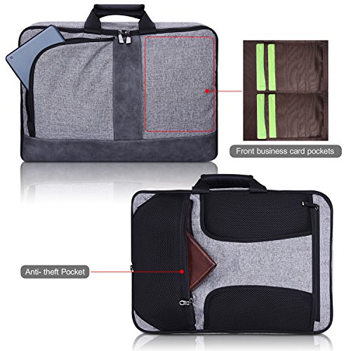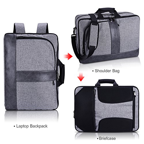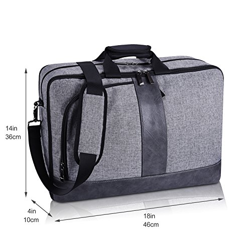 Suchen Sie eine Multifunktionstasche für die Arbeit/Business Reise/Berufschule/Uni? Dann ist diese Tasche die richtige. Die Tasche bietet verschiedene Tragemöglichkeiten: Im Auslieferungszustand liegt im Inneren ein Gurt, mit dem man sich die Tasche über die Schulter hängen kann. Auf der Oberseite befinden sich zwei Griffe; man kann die Tasche somit gut als „Aktentasche“ in der Hand tragen. Hinter einer Reißverschlussabdeckung finden sich dann Rucksackgurte. Zum Nutzen des Rucksacks rollt man die Rückseite hoch. Aufteilung: 1 x Geräumiges Hauptfach 1 x Seperated Laptopfach:die Maße des Laptopfaches ist 45 x 26cm, passt für meistens 17,3 Zoll Laptop. 4 x Fächer im Hauptfach:Sie können Ihr Maus, Ladegeräte für Ihr Computer, externe Festplatte oder Geldbörse verstauen. 1 x große Organizer Tasche:Die Stifte, Notebook, Handy, Passport oder andere Kleinram können sehr gut organisiert werden. 2 x Reißverschluss Fronttasche:Damit können Sie etwas legen, was Sie schnell herin/aus nehmen möchten 1 x Reißverschlusstasche Rückseite:Auf den Unterwegs können Sie Ihr Fleuzeug Ticket, ID Karte und Geldbörse stellen. Die Länge der Schultergurt und Rucksack TragegurtSchultergurt: 80cm-130cm; Rucksack Tragegurt: 45-60cm HINWEISE:Die Tasche ist nicht wasserdicht.