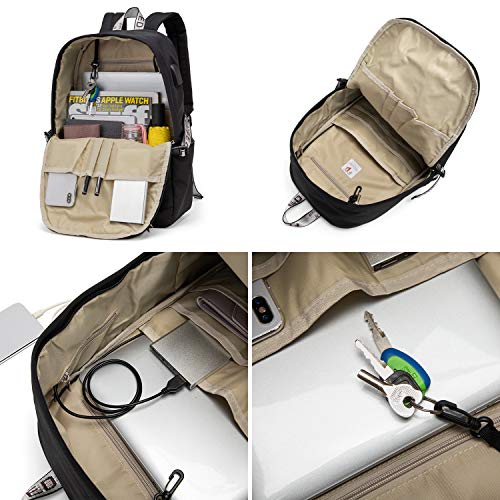 Hier kommt der modische Allzweck-Rucksack für jeden Zweck! 1. aus wasserabweichendem, reißfestem und hochdichtem Polyestergewebe mit hochwertigen Reißverschlüssen produziert.2. extra USB-Anschluss: verbinden Sie Ihrer Handy / Tablet z.B. mit einer Power-Bank (nicht im Lieferumfang enthalten) über die integrierte Ladebuchsel, jederzeit praktisch aufladen!3. extra Kopfhörer-Anschluss zum bequemen Musik hören.4. abnehmbar: der USB/Kopfhörer-Anschluss kann zur Reinigung des Rucksacks einfach abgenommen werden.5. Anti Diebstahl-Fach, auf Rückseite zum entspannten Reisen.6. Mit praktischer Schlaufe zur einfachen Befestigung an Koffer oder Fahrrad-Gepäckträger.7. Extra Laptop-Fach: geeignet für Laptops bis maximal 15.6″8. Extra Fach für Stifte, die Tacshe bleibt sauber und ordentlich.9. Extra Schnalle für Schlüsselrung: stets guter Zugriff zu den Schlüsseln.10. Zwei Seitentaschen für Regenschirm, Wasserflasche und anderes. 11. Breite Schultergurte: atmungsaktiv und Anti-Schweiß-Schulterträger für entspanntes Tragen. 12. Perfekt für jede Gelegenheit: Arbeit, Uni, Schule, Reise, Wandern, Camping, Shopping und andere Outdoor Aktivitäten, Unisex Stil für Frauen und Männer. 13. Ideal als Geschenk für Mädchen, Jungen, Teenager und Kinder.