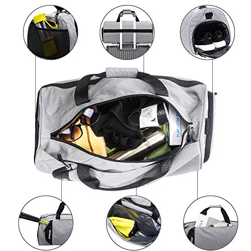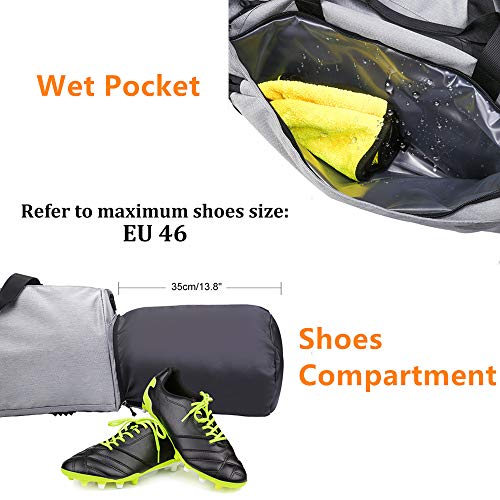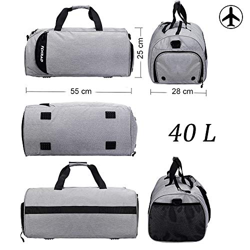 Eigenschaften: Hochwertige Materialien Hergestellt aus Polyestergewebe,das ist strapazierfähig und leicht, passt zu allem, ohne massiv und übertrieben zu sein. Perfekt für Fitness-, Sport- und Übernachtungsreisen. Extra Schuhfach Mit der extra Schufach kannst du deine Sportschuhe besser transportieren, von Bekleidung isoliert.Es ist mit zwei Lüftungsöffnungen, um die Belüftung in Ihren Schuhen zu halten. Abgeteilte und wasserdichte Nassfach Das Nassfache ist aus hochwertige PVC, kann Badeutensilien oder verschwitzte Trainingssachen von anderen Sachen trennen,dann bleibt alles sauber voneinander getrennt. Festen und stabilen Boden Die Boden von der Tasche aus 3 Schicht Schwammtuch, hart und leicht, nicht durchhängt wenn gefüllt. Koffer Gurt auf der Rückseite Auf der Rückseite der Tasche befindet sich ein Gurt,der mit dem Koffer verwendet werden kann. Die Tasche ist ideal für Reise und Dienstreise. Benutzerfreundlicher Griff und Schultergurt Der dickere Griff und Schultergurt reduziert die Schmerzen der Hand und Schulter. Mehrere Taschen-Design: 1 x Hauptfach mit 40L Kapazität; 1 x Nassfach für Badeutensilien; 1 x kleines Innenfach für Geldbeutel; 1 x Netzfach für Wasserflasche; 1 x Außenfach über komplette Längsseite; 1 x grosse Außenfach für Handtuch etc. 1 x Schuhfach Spezifikation: Material: Polyester/Nylongriffband Farbe: Hellgrau Größe: 55 * 28 * 25 cm (40 lit) Gewicht:710g Gesamtlänge des Schultergurts: 140cm Maximale Ladegewicht: 15 kg Transportarten: Handtasche / Umhängetasche / Transportiert auf dem Rollkoffer Verschlusstyp: Reißverschluss Anwendung: neutrale Tasche, alles ideal für Männer und Frauen Paketinhalt: 1 x Sporttasche 1 x Schultergurt