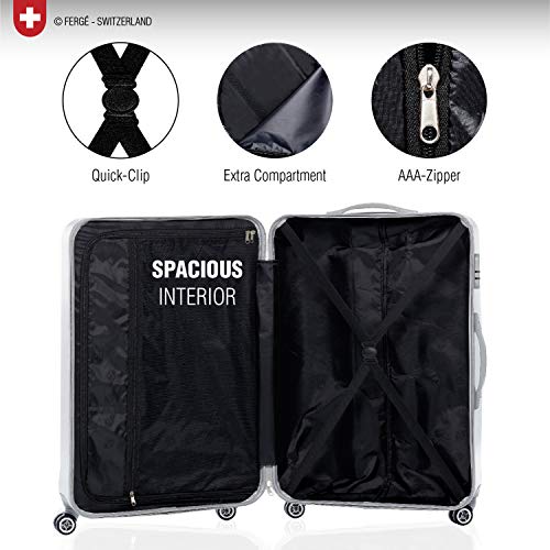 Original Kofferset Hartschale 3-teilig erweiterbar TOULOUSE by FERGÉ Diese beliebte Kofferserie aus strapazierfähigem ABS Material ist mit einem von uns entwickelten DURE-FLEX Verfahren versiegelt. Das Reisegepäck in unschlagbarer Kombination aus hochwertiger Qualität, durchdachtem Design, geringem Gewicht und robuster Langlebigkeit. Erst mit dem richtigen Koffer fängt deine Reise an. LIEFERUMFANGKoffer 20″(gängige Handgepäckgröße)Maße in cm (HxBxT): ca. 55 x 34 x 20 cmGewicht: 2,8 KgVolumen: ca. 45 LiterKoffer 24″Maße in cm (HxBxT): ca. 65 x 43 x 24 cmGewicht: ca. 3,5 kgVolumen:ca. 75 LiterKoffer 28″Maße in cm (HxBxT): ca. 75 x 50 x 28 cmGewicht: 4.2 KgVolumen: max. 110 LiterHIGHLIGHTS:Innenleben- Innennetzvorfach und Spanngurte- Trennwand im Innenraum- Standfeste Vorrichtung- 4 Kunststoff-Füße an der Längsseite4 Doppelrollenvier 360-Grad gummierte Zwillings-LeichtlaufrollenTragegriffehochwertiger höhenverstellbarer TeleskopgriffTragegriffe an 2 Seiten (oben und seitlich)Zahlenschloss:Sicherheits-Zahlenschloss mit verstellbarem Code & einer ausführlichen Anleitung zum Einstellen der ZahlenschlösserBesonderheit:alle drei Koffer sind Ineinander stapelbar und selbstverständlich beidseitig bepackbarKUNDENSERVICE:Wir stehen hinter jedem unserer Koffer und wünschen Ihnen die tollsten Reisen mit Ihrem neuen Begleiter. Wenn Sie Fragen oder Anmerkungen haben, kontaktieren Sie uns bitte über Amazon (Verkäufer kontaktieren).