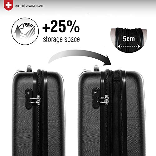 Original Kofferset Hartschale 3-teilig erweiterbar TOULOUSE by FERGÉ Diese beliebte Kofferserie aus strapazierfähigem ABS Material ist mit einem von uns entwickelten DURE-FLEX Verfahren versiegelt. Das Reisegepäck in unschlagbarer Kombination aus hochwertiger Qualität, durchdachtem Design, geringem Gewicht und robuster Langlebigkeit. Erst mit dem richtigen Koffer fängt deine Reise an. LIEFERUMFANGKoffer 20″(gängige Handgepäckgröße)Maße in cm (HxBxT): ca. 55 x 34 x 20 cmGewicht: 2,8 KgVolumen: ca. 45 LiterKoffer 24″Maße in cm (HxBxT): ca. 65 x 43 x 24 cmGewicht: ca. 3,5 kgVolumen:ca. 75 LiterKoffer 28″Maße in cm (HxBxT): ca. 75 x 50 x 28 cmGewicht: 4.2 KgVolumen: max. 110 LiterHIGHLIGHTS:Innenleben- Innennetzvorfach und Spanngurte- Trennwand im Innenraum- Standfeste Vorrichtung- 4 Kunststoff-Füße an der Längsseite4 Doppelrollenvier 360-Grad gummierte Zwillings-LeichtlaufrollenTragegriffehochwertiger höhenverstellbarer TeleskopgriffTragegriffe an 2 Seiten (oben und seitlich)Zahlenschloss:Sicherheits-Zahlenschloss mit verstellbarem Code & einer ausführlichen Anleitung zum Einstellen der ZahlenschlösserBesonderheit:alle drei Koffer sind Ineinander stapelbar und selbstverständlich beidseitig bepackbarKUNDENSERVICE:Wir stehen hinter jedem unserer Koffer und wünschen Ihnen die tollsten Reisen mit Ihrem neuen Begleiter. Wenn Sie Fragen oder Anmerkungen haben, kontaktieren Sie uns bitte über Amazon (Verkäufer kontaktieren).