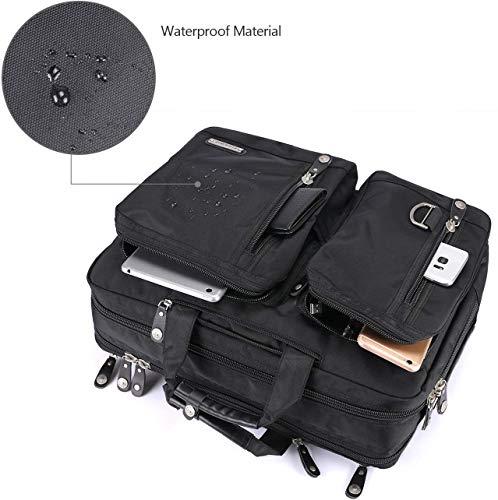 Multifunktions Reise Rucksack Messenger Bag Umhängetasche Laptop Tasche Reisegepäck Passend für 17,3Zoll Laptop/Männer/Frauen Diese Multifunktions Laptop Tasche gibt es drei Tragen Stile. Sie könnten es als Rucksack verwenden. Auch die Schultergurte können versteckt werden, wenn man sie benutzt, eine Aktentasche oder Umhängetasche. Spezielle Design von Laptop Fach bietet mehr Schutz für Ihren Laptop. Geräumig genug für Ihren Bedarf. Vier Außentaschen, bequem zu organisieren Ihre Artikel, die Sie tragen möchten wie Stiften,Power Bank,Smartphone,Mäppchen,Netzteil und Ladekabel usw. Leichtes Design ist einfach zum Tragen. Der Top Greifergriff bietet schnellen Greife-und-Gehen Stil. Bieten auch ergonomisches Design. Produktspezifikationen: 1.Dimensions: 35 x 46 x 19 cm (Höhe x Breite x Dicke) 2.Weight: 1.0KG 3.Material: Nylon + PVC 4.2 Große Fronttaschen mit sicheren geteilten Lagerung und Taschen; 2 kleinere schnellen Zugriff Fronttaschen; 1 großes Hauptlaptophülle Fach mit Netzinnentasche; 1 großes Hauptfach mit Unterteilungen gebaut. Lieferinhalt: 1x Laptop-Tasche (1x Convertible Tasche mit versteckter Griffe und Rucksack-1x Messenger Strap) Garantie: Wir bieten 12 monate Gewährleistungsgarantie sowie 30 Tage Rückgaberecht. Falls Sie Probleme über die Qualität des Produktes haben, möchten wir Sie bitten sich mit uns in Verbindung zu setzen, damit wir das Problem für Sie so schnell wie möglich lösen können.