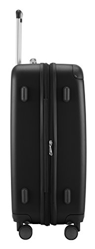 Spree-Hartschalenkoffer sind • leicht: der leere Koffer wiegt nur 4.2 kg • sehr groß: 74 Liter Volumen für Kleidung, Schuhe, Schlafsack und Kamera • ergonomisch: Teleskopstange auf drei Stufen einstellbar: 84, 94 oder 104 cm • langlebig: Teleskopstange aus verstärktem Aluminium • bruchsicher: ABS-Hartschalen sind extrem robust, absolut stabil und stoßunempfindlich • wendig: 4 gummierte Zwillings-Leichtlaufrollen, 360° drehbar – Rollen laufen sehr leise! • standfest: 4 Kunststoff-Füße an der Längsseite • praktisch: Tragegriffe an der Ober- und Längsseite • sicher: TSA-Zahlenschloss mit verstellbarem Code (WICHTIG für Reisen z.B. in die USA) • übersichtlich: flexibler Zwischenboden mit drei separaten Fächern unterteilt den Kofferinnenraum • ordentlich: Kreuzgurt sichert den Inhalt • nachhaltig: Tragegriffe, Teleskopgriff, Rollen und Standfüße sind geschraubt und können jederzeit nachbestellt werden Material Hartschale aus 100% ABS Maß- und Gewichtsangaben Mittelgroßer Koffer M (65 cm) Maße mit Rollen und Griffen: 65 x 41 x 26 cm Maße ohne Rollen und Griffen: 60 x 39 x 26 cm Gewicht: 4,2 kg Max. Packvolumen (inkl. Volumenerweiterung): 74 Liter Min. Packvolumen: 61 Liter Versandvolumen: 82 Liter Lieferumfang: Reisekoffer (HxBxT) ca. 65 x 41 x 26 cm (HxBxT) mit Griffen und Rollen (erweiterbar auf 65 x 41 x 34 cm) Gewicht ca. 4.2 Kg und max. Inhalt ca. 74 Liter + 1x DESIGN KOFFERANHÄNGER