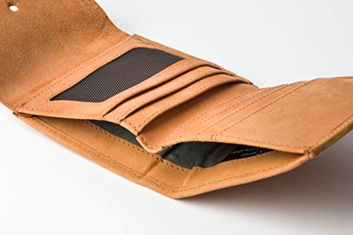 Liebenswert! Die niedliche Damen Geldbörse punktet als Minimalist unter den Portemonnaies durch ihr kompaktes Kleinformat und muss dabei nicht auf diverse Fächer und Steckmöglichkeiten für viele Kärtchen verzichten. Kleingeld, Scheine und allerlei Kleinkram sind ebenso bestens aufgehoben. Das Design entzückt mit dem HOLZRICHTER typischen Knopfverschluss – ein stylisches Accessoire für unterwegs.DETAILS- 11cm (H) x 10cm (B) x 2cm (T)- Farbe: camelbraun- Eleganter Knopfverschluss- Wertiger Innenstoff aus Baumwolle, basaltgrauAUFTEILUNG- Sieben praktische Kartenfächer – ein großes seitliches Hauptfach-Ein rückseitiges Münzfach mit Zipper MISSIONZeitloses Design, entworfen nach dem Vorbild der ledernen Ikonen der Jet Age -Ära (1940-1970). Handgefertigt mit dem Komfort und der Klasse, wie man sie von einem Täschner erwarten würde. HOCHWERTIGE MATERIALIENPflanzlich gegerbtes Premium Leder, produziert unter nachhaltigen ökologischen Standards. Echtes Naturleder hat eine lange Lebensdauer, riecht wie hochwertíges Leder riechen sollte (angenehm holzig, niemals aufdringlich) und entwickelt eine prächtige Patina – das vermutlich beliebteste Qualitätsmerkmal einer hervorragenden Ledertasche. Die anspruchsvolle Herstellung ohne den Einsatz schädlicher Chemikalien dauert bis zu mehreren Monaten (die Chromgerbung ca. 1-3 Tage) und betrifft heute nur noch etwa 10% der weltweiten Lederproduktion. 100% ORIGINALOhne industrielle Zurichtungen wie Farbaufträge und Versiegelungen bleibt das originale Bild des Leders erhalten und trägt ein tiefes, facettenreiches Farbprofil. Wichtig: ein authentisches Naturprodukt hat individuelle Farben und kann auch Falten, Punkte, Flecken oder Kratzer aufweisen.