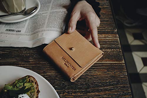 Liebenswert! Die niedliche Damen Geldbörse punktet als Minimalist unter den Portemonnaies durch ihr kompaktes Kleinformat und muss dabei nicht auf diverse Fächer und Steckmöglichkeiten für viele Kärtchen verzichten. Kleingeld, Scheine und allerlei Kleinkram sind ebenso bestens aufgehoben. Das Design entzückt mit dem HOLZRICHTER typischen Knopfverschluss – ein stylisches Accessoire für unterwegs.DETAILS- 11cm (H) x 10cm (B) x 2cm (T)- Farbe: camelbraun- Eleganter Knopfverschluss- Wertiger Innenstoff aus Baumwolle, basaltgrauAUFTEILUNG- Sieben praktische Kartenfächer – ein großes seitliches Hauptfach-Ein rückseitiges Münzfach mit Zipper MISSIONZeitloses Design, entworfen nach dem Vorbild der ledernen Ikonen der Jet Age -Ära (1940-1970). Handgefertigt mit dem Komfort und der Klasse, wie man sie von einem Täschner erwarten würde. HOCHWERTIGE MATERIALIENPflanzlich gegerbtes Premium Leder, produziert unter nachhaltigen ökologischen Standards. Echtes Naturleder hat eine lange Lebensdauer, riecht wie hochwertíges Leder riechen sollte (angenehm holzig, niemals aufdringlich) und entwickelt eine prächtige Patina – das vermutlich beliebteste Qualitätsmerkmal einer hervorragenden Ledertasche. Die anspruchsvolle Herstellung ohne den Einsatz schädlicher Chemikalien dauert bis zu mehreren Monaten (die Chromgerbung ca. 1-3 Tage) und betrifft heute nur noch etwa 10% der weltweiten Lederproduktion. 100% ORIGINALOhne industrielle Zurichtungen wie Farbaufträge und Versiegelungen bleibt das originale Bild des Leders erhalten und trägt ein tiefes, facettenreiches Farbprofil. Wichtig: ein authentisches Naturprodukt hat individuelle Farben und kann auch Falten, Punkte, Flecken oder Kratzer aufweisen.
