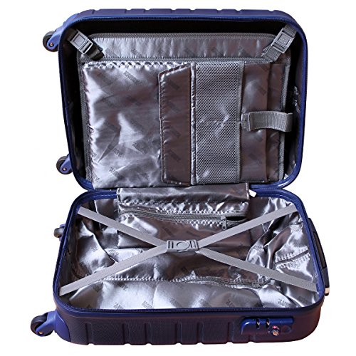 Handgepäck Hartschalen Koffer TSA Zahlenschloss Außenmaße (mit Rollen) ca. 55 x 40 x 20 cm Innenmaße ca. 47 x 38 x 18 cm = ca. 32 Liter Volumen Ausziehgriff (ca. 16 cm breit) mit solider Aluminiumstange um ca. 50 cm ausziehbar 4 leichtgängige Gummi Rollen maximale Mobilität 360° drehbare Rollen Gesamthöhe des Koffers mit ausgezogenem Ausziehgriff ca. 103 cm Material: ABS Leergewicht: ca. 2,8 KG Extrem stabil und sehr leicht Sehr Robuste Bauweise praktische Inneneinteilung Reißverschluss mit 2 Zippern, die am TSA Zahlenschloss abschließbar sind Stabiler Soft Touch Tragegriff oben 4 um 360° frei in alle Fahrtrichtungen drehbare Gummirollen. Dadurch macht der Koffer jede Änderung der Fahrtrichtung sofort mit, ohne dass Sie erst den ganzen Koffer in Fahrtrichtung ausrichten müssen, wie das bei starr an den Koffer montierten Rollen der Fall wäre. Textil innen Futter aus Polyester, mit Schaumstoff ausgepolstert Im Innenraum: Kreuzgurt zum Fixieren des Inhalts und Trennwand mit Taschen. Dadurch ist ein schnelles, ordentliches und beidseitiges Ein- und Auspacken möglich. Extra Gepolsterte Tasche auf der Trennwand für Notebooks Handy s und Tablet PC s 2 Hauptfächer für beidseitiges Packen Neuware Hochwertige Materialien für den Europäischen markt gefertigt.