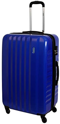 Außenmaße (mit Rollen , Griff , Füssen und Vergrößerung) ca. 76 x 48 x 33 cm ohne Vergrößerrung 29 cm Entsprich mit einem Gurtmaß von 157 cm dem Maximalen Gurtmaß der gängigen Fluggesellschaften von 158 cm 4 um 360° frei in alle Fahrtrichtungen drehbare Gummirollen. Dadurch macht der Koffer jede Änderung der Fahrtrichtung sofort mit, ohne dass Sie erst den ganzen Koffer in Fahrtrichtung ausrichten müssen, wie das bei starr an den Koffer montierten Rollen der Fall wäre. maximale Mobilität 360° drehbare Rollen Gesamthöhe des Koffers mit ausgezogenem Ausziehgriff 103 cm Material: Polykarbonat Leergewicht: ca. 4,4 KG Reißverschluss mit 2 Karry Zippern, die am TSA Schloss abschließbar sind stabiler Tragegriff seitlich und oben Ausziehgriff (ca. 16 cm breit) mit solider Aluminiumstange Stabiler Soft Touch Tragegriff seitlich und oben Ausziehgriff ist um ca. 28 cm ausziehbar Textil Innenfutter aus Polyester plus leichte Schaumstoff Polsterung Trennwand mit Netz im Innenraum und 1 x Gurt kleine extra Tasche 2 Hauptfächer für beidseitiges Packen Im Innenraum: Kreuzgurt zum Fixieren des Inhalts und Trennwand mit Taschen. Dadurch ist ein schnelles, ordentliches und beidseitiges packen möglich. Neuware Hochwertige Materialien für den Europäischen Markt gefertigt.
