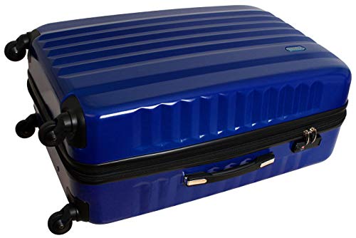 Außenmaße (mit Rollen , Griff , Füssen und Vergrößerung) ca. 76 x 48 x 33 cm ohne Vergrößerrung 29 cm Entsprich mit einem Gurtmaß von 157 cm dem Maximalen Gurtmaß der gängigen Fluggesellschaften von 158 cm 4 um 360° frei in alle Fahrtrichtungen drehbare Gummirollen. Dadurch macht der Koffer jede Änderung der Fahrtrichtung sofort mit, ohne dass Sie erst den ganzen Koffer in Fahrtrichtung ausrichten müssen, wie das bei starr an den Koffer montierten Rollen der Fall wäre. maximale Mobilität 360° drehbare Rollen Gesamthöhe des Koffers mit ausgezogenem Ausziehgriff 103 cm Material: Polykarbonat Leergewicht: ca. 4,4 KG Reißverschluss mit 2 Karry Zippern, die am TSA Schloss abschließbar sind stabiler Tragegriff seitlich und oben Ausziehgriff (ca. 16 cm breit) mit solider Aluminiumstange Stabiler Soft Touch Tragegriff seitlich und oben Ausziehgriff ist um ca. 28 cm ausziehbar Textil Innenfutter aus Polyester plus leichte Schaumstoff Polsterung Trennwand mit Netz im Innenraum und 1 x Gurt kleine extra Tasche 2 Hauptfächer für beidseitiges Packen Im Innenraum: Kreuzgurt zum Fixieren des Inhalts und Trennwand mit Taschen. Dadurch ist ein schnelles, ordentliches und beidseitiges packen möglich. Neuware Hochwertige Materialien für den Europäischen Markt gefertigt.