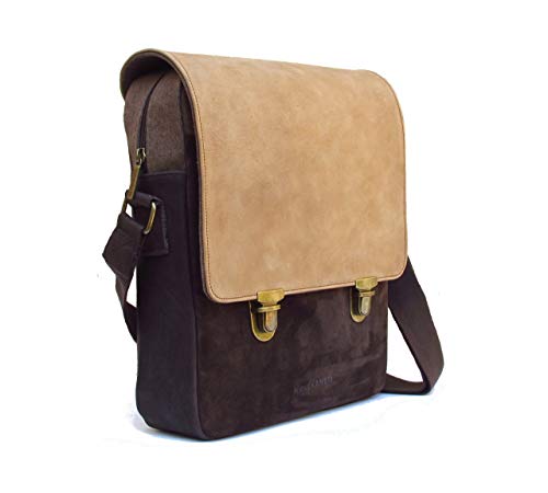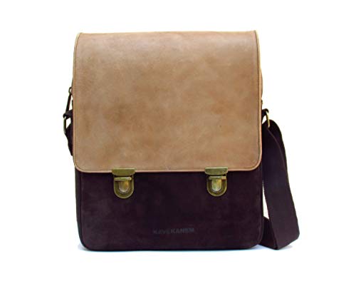 Umhängetasche für Männer aus gewaschenem Leder und Baumwolle. Die Kombination verschiedener Lederarten mit Baumwolle verleiht einen Hauch von Wärme und Originalität. Die Klappe ist aus geöltem Leder. Das Hauptmerkmal dieses Hauttyps ist seine Porosität und sein natürliches Aussehen, es ist einfach, Markierungen zu erzeugen, die der Tasche Persönlichkeit verleihen. Um es gleichmäßiger aussehen zu lassen, reiben Sie es vorsichtig mit einem Baumwolltuch ein. Es hat eine große offene Tasche auf der Frontplatte, die Klappe ist mit zwei schönen Metallschließen in einem alten Goldbad gesichert. Die Tasche schließt mit Reißverschluss. Das Futter besteht aus Baumwolle. Im Inneren hat es eine Reißverschlusstasche. Diese Tasche eignet sich zum Tragen von Büchern, Ordnern, Tablets und sogar einem kleinen Laptop. Es hat die perfekten Maße, um genug Kapazität zu haben, ohne übermäßig schwer zu sein. Es ist ideal als Arbeits-, Wander- oder Reisetasche. Diese Tasche wurde auf handwerkliche Art und Weise hergestellt, wobei auf die Details und die Qualität der Materialien geachtet wurde. Wir kombinieren gerne verschiedene Materialien und Texturen, damit unsere Taschen etwas Besonderes sind. Sie werden von Menschen gemacht, die ihre Arbeit lieben. Maße: 32x27x10 cm
