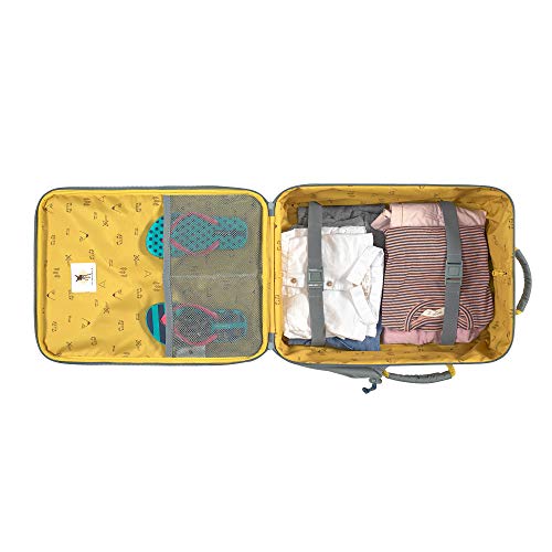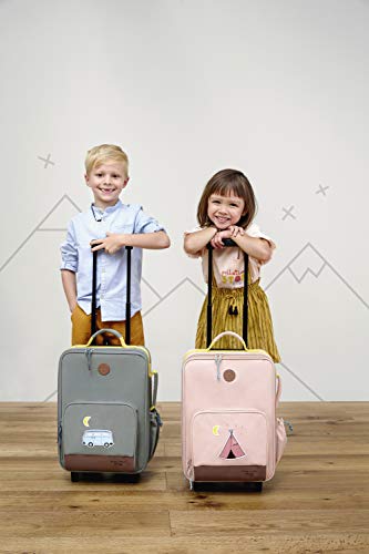 Lässig Trolley klein und handlich Lieferumfang Lässig Set: o Trolley mit Etikett und Sticker o Sportrucksack mit Etikett Daten Trolley: o Maße: Breite ca. 30 cm, Höhe ca. 46 cm, Tiefe ca. 20 cm o Teleskop Trolleysystem verstellbar: ca. 0 cm – ca. 42 cm o Gewicht: ca. 1950 g o Farbe: Bus (Grün / Gelb) o 2 Tragegriffe gepolstert: ca. 19 cm o Material: 100% Polyester o Lieferumfang: Lässig Trolley mit Etikett, 3 x Sticker Ausstattung Trolley: o Trolley wird mit Two Way Zipper geschlossen o Im Hauptfach 2 Netz-Einschubfächer mit Gummizug und 2 Kompressionsriemen mit Clipverschluss o Auf der Vorderseite 1 aufgesetztes Zipperfach mit Two Way Zipper, in dem sich 2 Netz-Einschubfächer mit Gummizug und 1 Namensschild befinden o Auf der rechten Seite 1 Einschubfach mit Zugband für Trinkflaschen oder Regenschirme o Mit leisen Rollen, fester Bodenplatte und Schutzfüßchen ausgestattet o Mit vielseitigen Trageoptionen und weiter Öffnung ausgestattet o Ist groß genug für DIN A4 o Ist standfest o Besitzt 2 Rollen o Das Lässig Logo ist gut sichtbar eingearbeitet Daten Sportrucksack: o Maße: Breite ca. 36 cm, Höhe ca. 39 cm, Tiefe ca. 1 cm o Gewicht: ca. 70 g o Farbe: Bus (Gelb) o 2 Kordeln: ca. 32 cm – 62 cm o Material: 100% Polyester o Lieferumfang: Lässig Sportrucksack mit Etikett Ausstattung Sportrucksack: o Sportrucksack wird mit Zugband geschlossen o Besitzt geräumiges Hauptfach o Das Lässig Logo ist gut sichtbar eingearbeitet Lässig Adventure Trolley – Der praktische Trolley Mit diesem Lässig Trolley wird sich Ihr Kind, wie ein Erwachsener fühlen. Der Lässig Adventure Trolley Trolley macht den