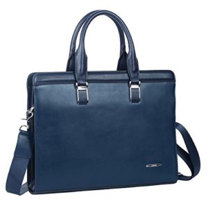 Leathario Damen Herren Ledertasche Umhängetasche Aktentasche Laptoptasche Arbeitstasche Businesstasche Messenger Bag (Blau)