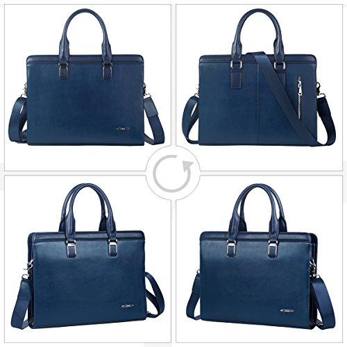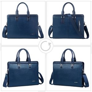 Leathario Damen Herren Ledertasche Umhängetasche Aktentasche Laptoptasche Arbeitstasche Businesstasche Messenger Bag (Blau)