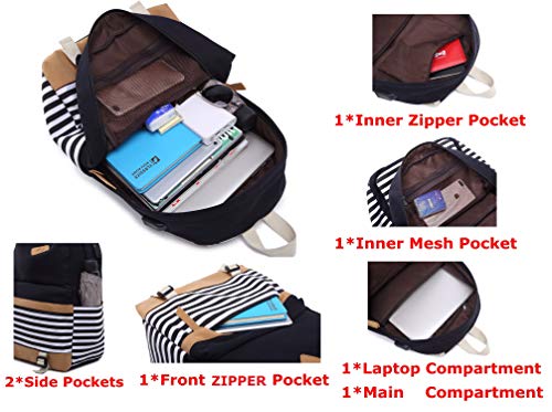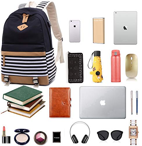 Canvas Rucksack für Mädchen, Leben mehr Mode und wunderbar! Hohe Kapazität & Organized Design: Das innere Intervall ist wissenschaftlich und rational so konzipiert, dass die platzierten alle Dinge ordentlich sind. b> Struktur: – 1 Haupttasche mit Doppel-Reißverschluss – 1x USB-Ladebuchse (rechts) – 2 kleine Innenfächer für wertvolle Gegenstände – 1 Laptopfach (passt 15.6in) mit gepolstertem Kissenschutz – 1 Frontreißverschlusstasche zur Aufnahme kleiner Accessoires – 2 Seitentaschen für Regenschirm oder Wasserflasche – 1 Geldbeutel Eigenschaften: – Farbe: Schwarz – Style: Fashion Naval Streifen – Material: Hochwertiger Canvas, verstellbare Schulterriemen – Gelegenheit: Party, Entspannung, Ferien, Reisen, Outdoor, Schule, Sport ect. – Geeignet für Mädchen für Schulunterricht, Camping, hilking, Picknick, Klettern; Kann als Schulranzen, Reisetaschen, Alltagsrucksäcke, Freizeitrucksäcke verwendet werden. – Passe A4 Aktenordner, Regenschirme, Brieftaschen, Bücher, Stifte & Bleistifte, Brillen, Papiertücher und andere Gegenstände in Komfort und Stil mit der Rucksack Dimension Rucksack: 35 x 17 x 45cm (L * B * H) Pencil / Handtasche Tasche: 17,5 x 12,5 cm Paket beinhaltet: – 1x Rucksack – 1x Geldbörse – 1x USB Kabel