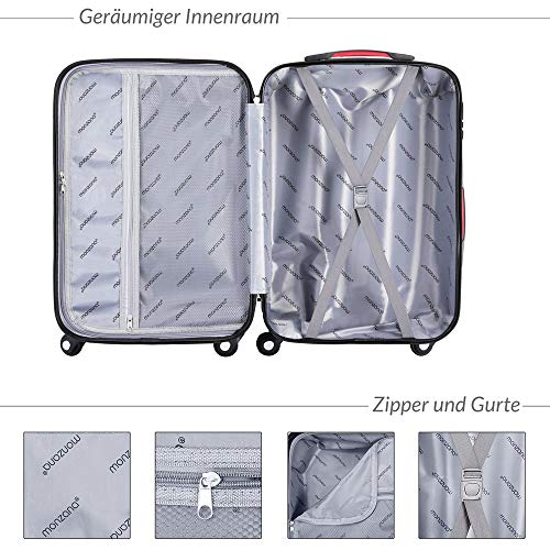 Das neue Urlaubsjahr 2019 ist noch jung und Ihre alten Koffer hatten schon bessere Zeiten? Entdecken Sie hier die neuen Hartschalen Trolleys der Marke Monzana!Unsere modernen Hartschalen sind erhältlich in Größe M (Handgepäck), L (unser Alleskönner) und XL (der große Koffer für den großen Urlaub). Diese Koffer sind perfekte Reisebegleiter für Flug-, Zug- oder Schiffsreisen. Egal ob für den Wochenendausflug oder Urlaub – mit einem zuverlässigen, leichten und sicheren Koffer Trolley ist wird Reise ein Klacks.Was Ihnen unsere Hartschalenkoffer bieten:Die Koffer der Marke Monzana versprechen Ihnen widerstandsfähige, leichte Gehäuse sowie flexible Packmöglichkeiten. Freuen Sie sich über durchdachte Koffer, welche ebenfalls durch einfache Bedienung und Handhabung beim Transport punkten. Weitere Produktvorteile: – Zahlenschloss ( Anleitung zum Einstellen folgt am Ende der Beschreibung) – hochflexible ABS Hartschale – Netzfach und Spanngurte- 4 gummierte Rollen – 360° Drehbar für leichtes Handling- Kantenschutz- ergonomische Tragegriffe (oben und seitlich)- Koffer unterschiedlicher Größe sind ineinander stapelbar – ausgekleideter Innenraum – ergonomischer Teleskopgriff Technische Daten: – Material: ABS Polycarbonat – Farbe: schwarz – Größe:XL Koffer XL: – Maße: 47x29x69,5cm – Volumen: 90Liter – Gewicht: 3,5kg Lieferumfang: Hartschalenkoffer entsprechend Farbe und Größe Anleitung um das Zahlenschloss zu Schloss kalibrieren: Einfach Hebel am Schloss zurückziehen, die gewünschte Zahlen-Kombination eingeben und Hebel loslassen, schon ist Ihr Code eingestellt.